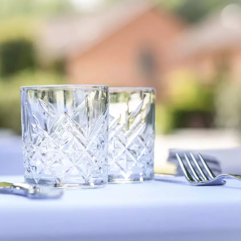 Verre Timeless 35.5cl. Très beau gobelet en verre avec motif extérieur ciselé, idéal pour le service des whiskies et autres spiritueux.